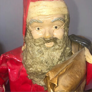 Vintage Paper Mache Santa Sack Bell Wooden Base 14.5” Tall