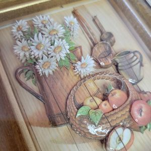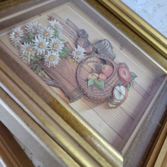 Vintage Paper Tole 3-D Art Holly Hobbie Kids Fruits and Country Flower Basket Shadow Box Set 2
