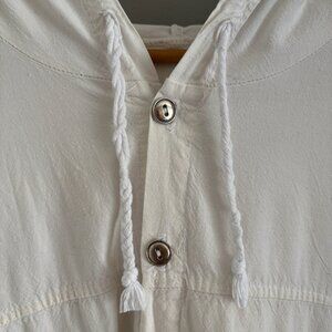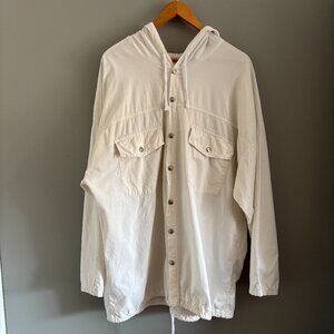 Vintage Papery White Cotton Hooded Shacket