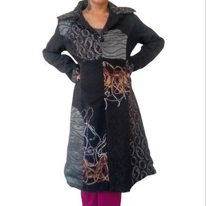 Vintage Papillon Overcoat Jacket Black Gray Orange Size Small Medium