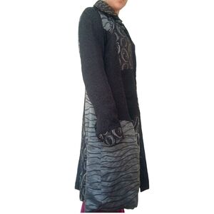 Vintage Papillon overcoat jacket in black, gray, and orange. Size Small to Medium.