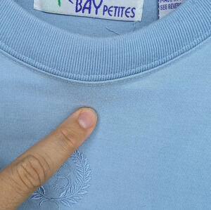 Vintage Paradise Bay Petites Blue Embroidered Basic Tee - Shoulder Pads