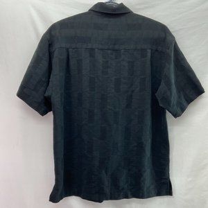 Vintage Paradise Blue Men's Silk Tropical Button Up Shirt Black - Small