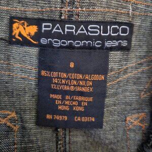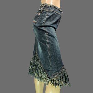 Vintage Parasuco Fringed Denim Midi Skirt Size S Dark Wash Grunge Festival