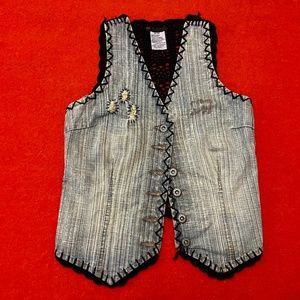 Vintage Parasuco boho distressed denim and crochet vest GUC