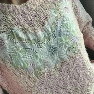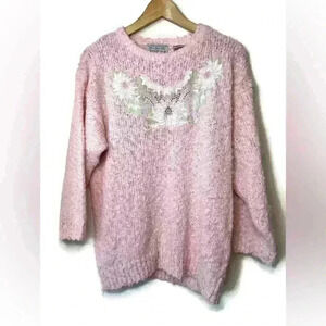 Vintage Paris Sports Club Cottagecore Pink Knit Floral Embroidered Sweater Small