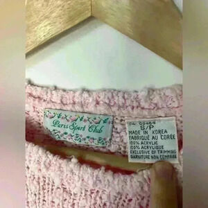 Vintage Paris Sports Club Prep Light Pink Knit Floral Embroidered Sweater Small
