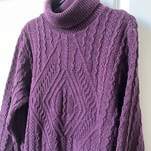 Vintage Parkhurst Turtleneck Sweater Womens Purple Cable Knit Made in Canada