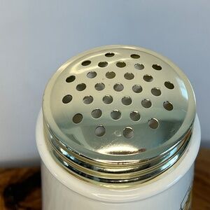 This cheese shaker is a unique piece from the Himark franchise. It's a collectible item that serves a practical purpose, making it a fantastic addition to any culinary collection or a standout piece on your dining table. In excellent used condition with no chips or cracks. The image is bright and clear and the inside is very clean.