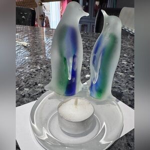🐧✨ Party Lite Frosted Glass Penguin Duo Candle Holder – Winter Wonderland Vibes! ✨🐧