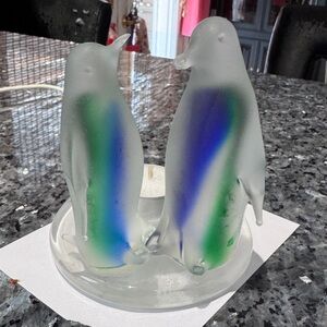 • Design: Two frosted glass penguins on a sleek round base