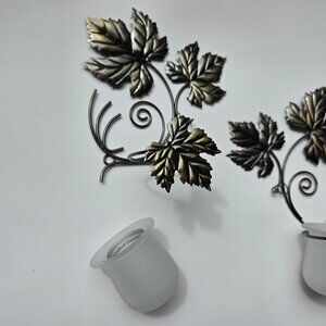 Vintage Pair of PartyLite Antique Grape Leaf Sconce Wall Candle Holders.
