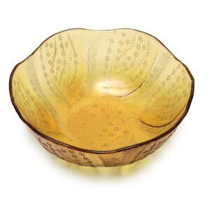 Vintage Pasabahce Amber Glass Salad Bowl Yellow Floral Scalloped Edge 90s Retro