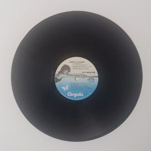 This is the 1980 first pressing of Pat Benatar Crimes of Passion vinyl record. The album cover and vinyl record are original to 1980. Chrysalis, CHE 1275.