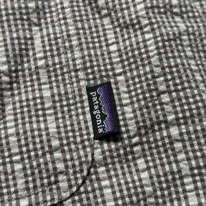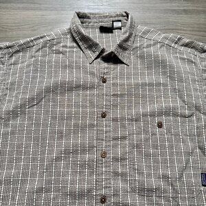 *Vintage Patagonia Men's Seersucker Short Sleeve Shirt - Brown/Grey