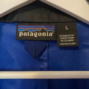 Excellent condition - vintage men's windbreaker from Patagonia in classic blue. One zip pocket. Black embroidered logo on lapel.