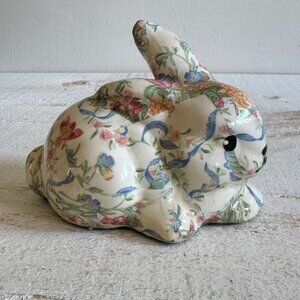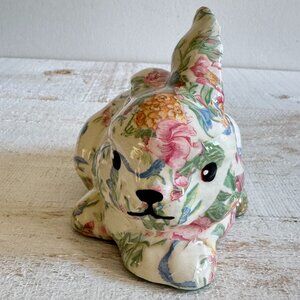 Vintage Patchwork Floral Bunny Rabbit Figurine