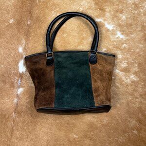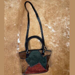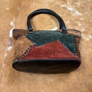 Vintage Patchwork Suede Leather Purse 90s Shoulder Bag Boho