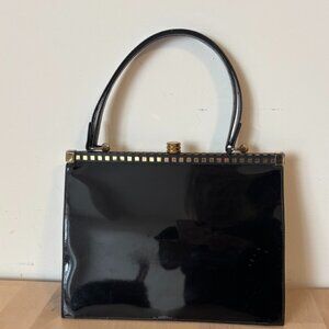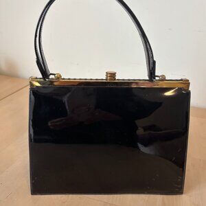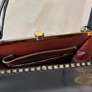Vintage Patent Leather Purse with tarnished goldtone detail