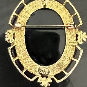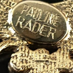 Vintage Victorian Revival signed Pauline Rader Gold Plated Glass Etching Brooch