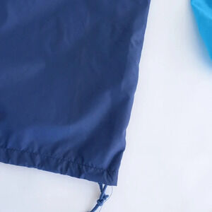 The Vintage PCH Teal and Navy Waterproof Nylon Hooded Half-Zip Windbreaker Jacket in size G/L (likely a large size) is a practical yet stylish piece of retro outerwear. The teal and navy color scheme evokes a vibrant, 80s-90s aesthetic, perfect for those who love vintage fashion. The bold contrast between the two colors creates a standout look while maintaining a sporty, casual vibe.