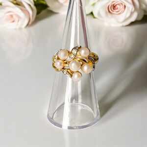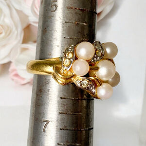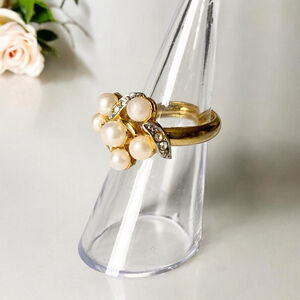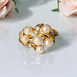 Vintage Pearl Avon Signed Gold tone Ring with Faux Pearls Rhinestones Si…