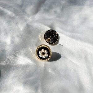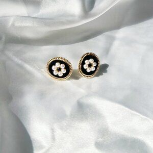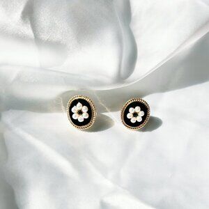 Vintage Pearl Flower Stud Earrings Elegant Black & Gold Design inspired floral