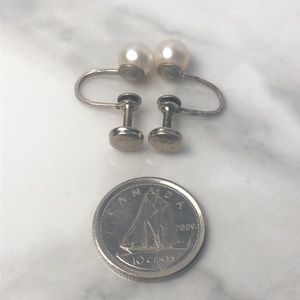 Vintage Pearl Screw-back sterling silver clip on Earrings