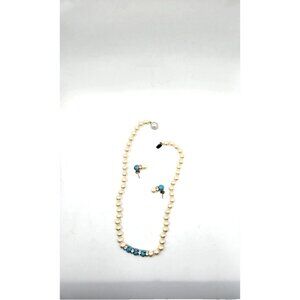 Vintage Pearl and Howlite with Rhinestones Necklace and Pierced earring Set