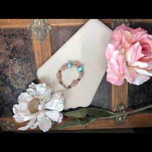 Beautiful pearl and turquoise beaded bracelet. Very classy and pretty with any outfit.