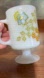 Vintage Pedestal Milk Glass Footed Mugs - Flowers - Set of 2