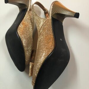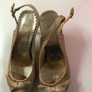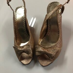 Super cute 1950s/1960s gold sling back peep toe shoe.