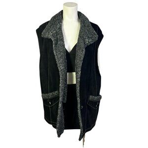 vintage shearling vest, black suede vest, fuzzy leather vest, oversized winter layering piece, Pelle Nova vest, plus size leather vest, women’s black leather outerwear, grunge fashion, boho outerwear, 90s leather layering, wool-lined vest