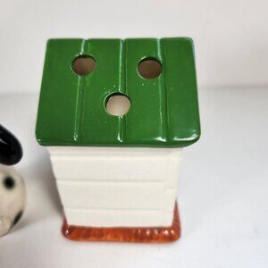 Vintage Pencil Sharpener & Holder MCM Dog & Doghouse Bone China Made In Japan