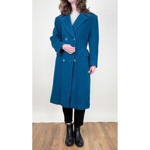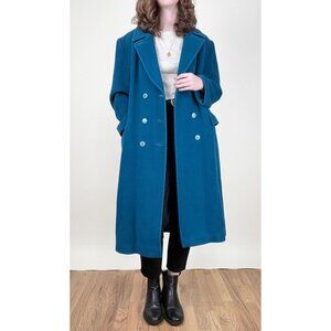 This exquisite vintage Pendleton long wool coat, presented in a striking teal hue, offers timeless style and exceptional warmth. Featuring a classic double-breasted design and luxurious 100% virgin wool, it's a perfect blend of heritage quality and enduring elegance for your cold-weather wardrobe