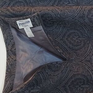 Vintage Pendleton Baroque Gray Wool Max Skirt Fully Lined Size 14. Hidden Zipper. Back Slit. 100% Wool. Gray and Bkack Baroque Pattern.