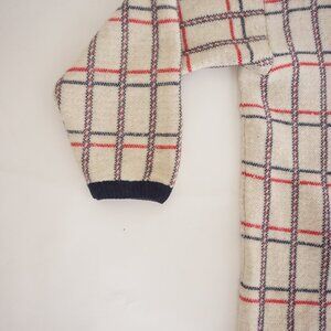 This Vintage Pendleton cardigan captures the refined ease of heritage woolwear, woven in a classic cream plaid accented with navy and soft red for that timeless Preppy feel. The pure virgin wool gives it a warm, substantial hand, while the navy trim and gold-tone buttons add a polished Old Money finish that elevates even your simplest outfits. It’s the kind of cardigan that feels instantly iconic — the piece you reach for on crisp mornings, library afternoons, or anytime you want a clean, tailored layer with quiet presence.