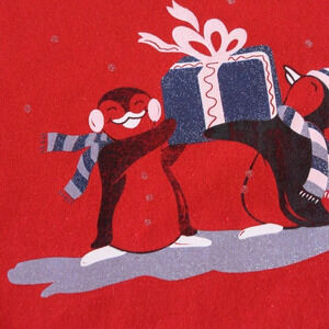 Celebrate the season with this Vintage Penningtons Red "Penguins & Presents" Festive Holiday Crewneck Sweater. This cheerful sweater features an adorable design of penguins surrounded by festive presents, making it the perfect choice for holiday gatherings or adding a touch of whimsy to your winter wardrobe. The vibrant red color is ideal for spreading seasonal cheer and pairs beautifully with jeans or leggings for a cozy, casual look.