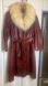 Vintage Penny Lane Burgundy Leather Trench Coat with Faux Fur Collar, Size M