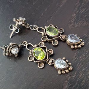 Bought at an auction house. Not sure what they are set in, possibly marcassite. The stone at the top is either rhinestone or zirconium.