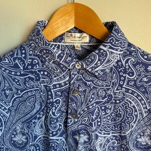 Vintage Peter Millar Crown Soft Abstract Paisley Polo Shirt Short Sleeve Blue M
