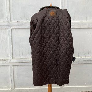 Pre-owned vintage condition: leather has the perfect "lived in" look with some rub marks along hemline and elbows, natural variations to leather. Quilted polyester lining has a few small snags (not visible when worn). A few of the elastic loops on the removable collar are stretched out but are still functional - would be easy to have replaced if desired.