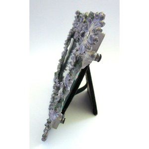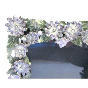 * Vintage Pewter Gray Enameled Purple Floral Rhinestone Ornate Picture Frame 5x5