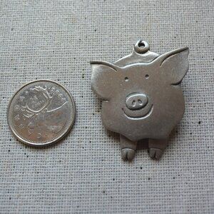 Vintage Pewter Pig Brooch with Moving Legs Signed "MALI"