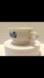 This iconic model, introduced in the late 1960s, features a hand-painted blue floral motif on lightly speckled cream stoneware.