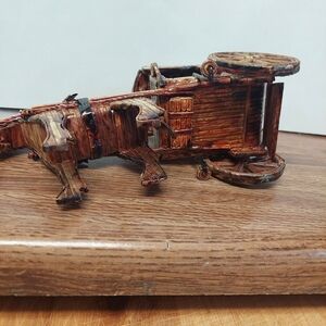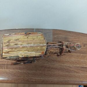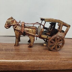 Vintage Philippines Handmade Passenger Transport Cart. Told made with bamboo strips. Wheels turn. Well-made horse and cart with driver. Approx 8.5" x 3.5" x 4.5"