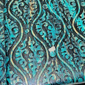* please note as shown on last photo that there is a small tear of the lining lower left front cover exposing the gray color of the underlining *