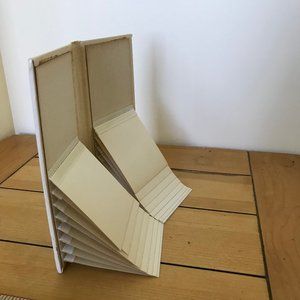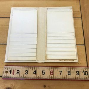 Vintage photo album has gold-tone lettering & design on the front cover. 16 double-sided flip pages hold 3"x 3 1/2" photos . Pre-owned vintage condition: has small marks/indents to cover, wear to inner photo pages. See photos. Album size is approx. 8" x 4 1/4" x 5/8".
