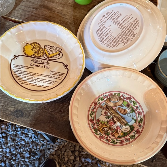 Set of vintage pie recipe plates featuring lemon and country kitchen designs. Perfect for baking enthusiasts.