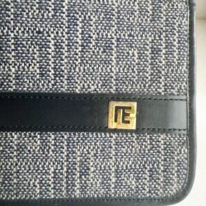 Vintage Pierre Balmain Navy Blue Canvas Envelope Clutch